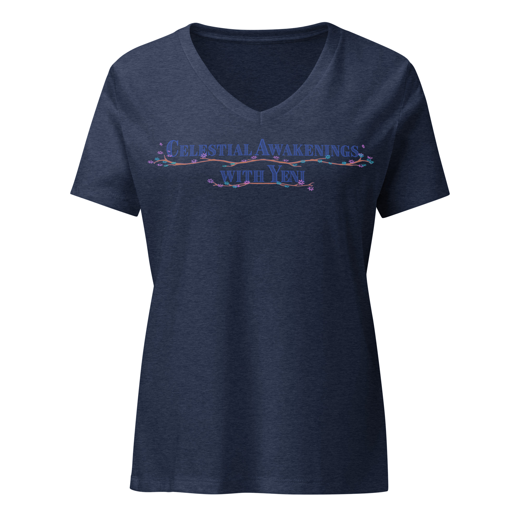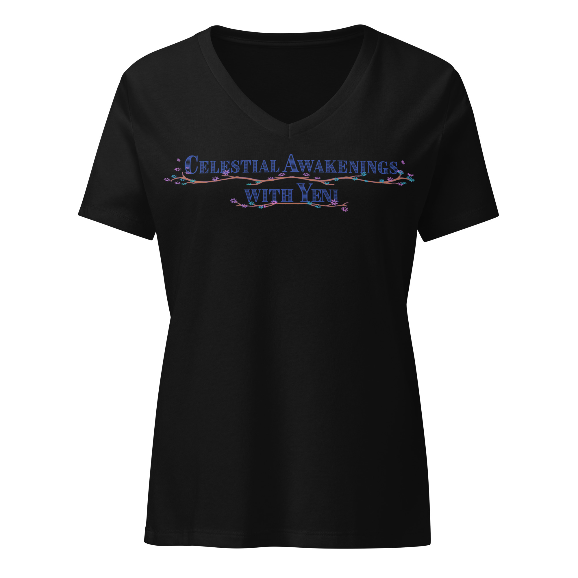 Women’s Relaxed V-neck T-shirt – (Dark Logo – WORDS ONLY )